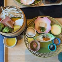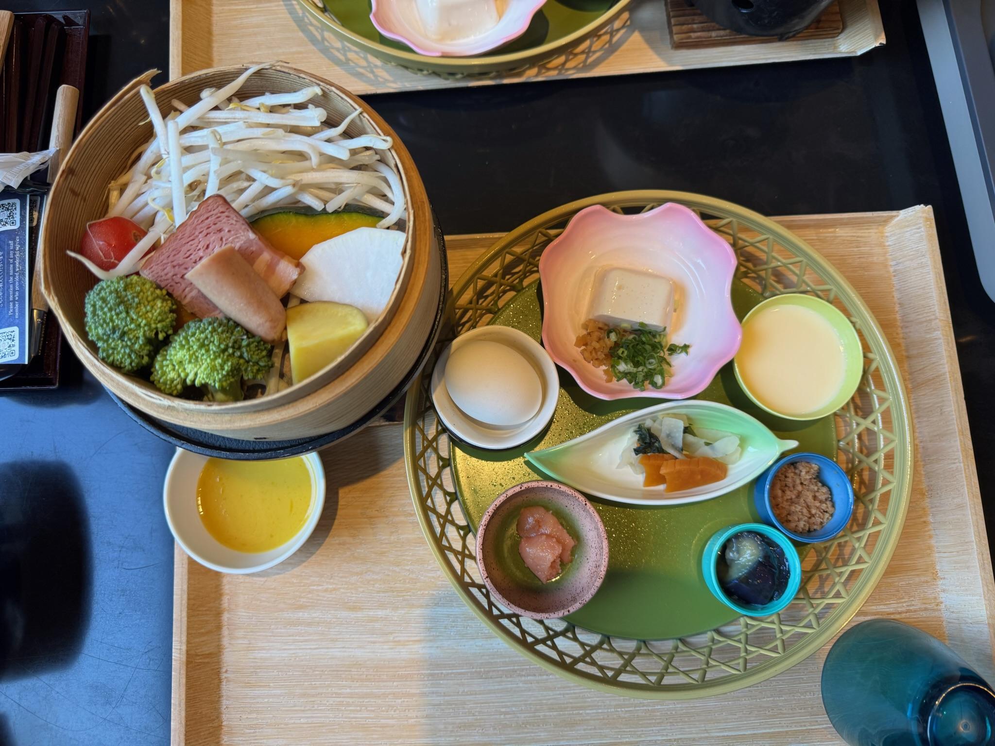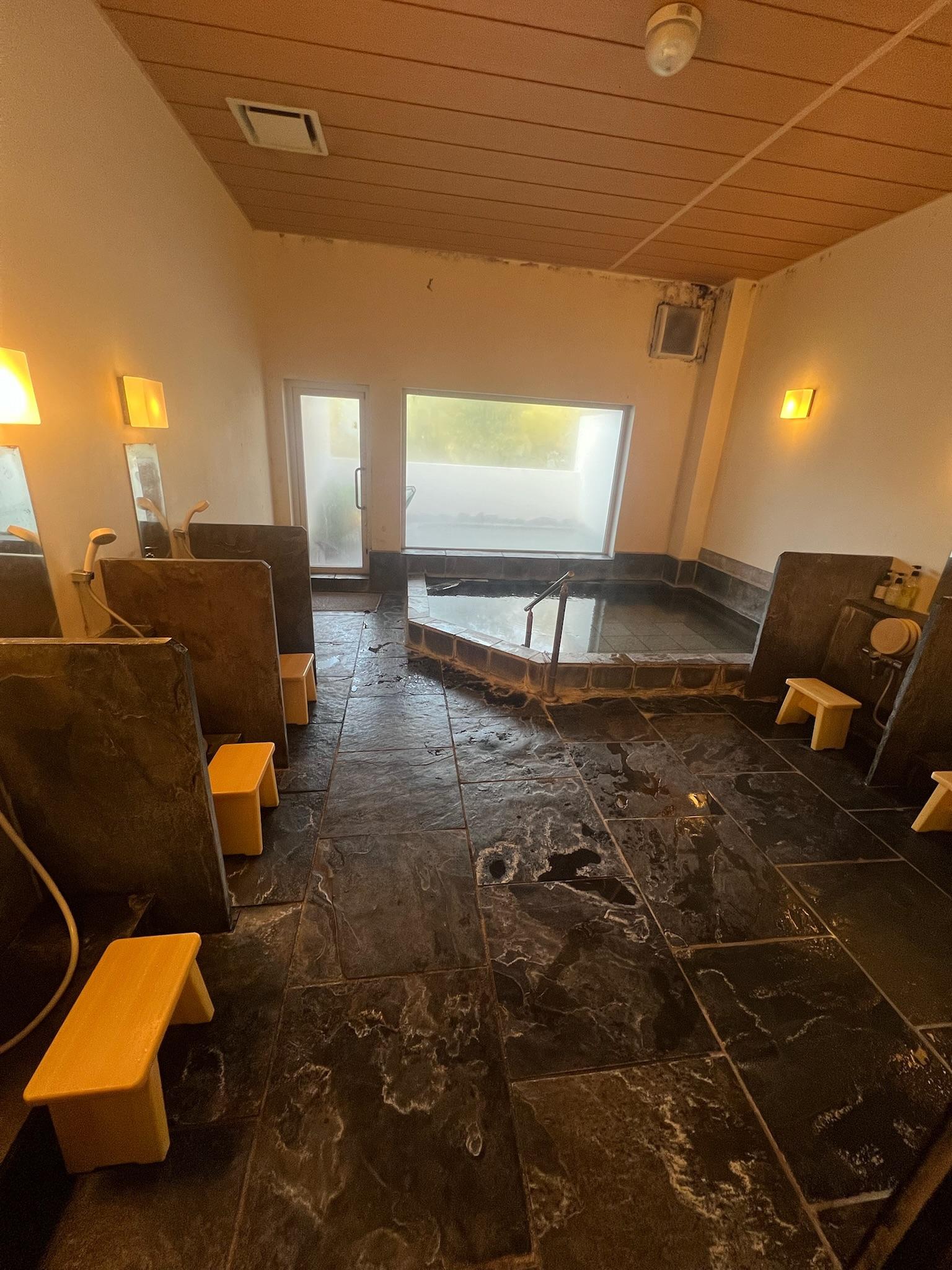 Today, we woke up earlier (~6:45 am) and headed to try out the public onsen at our hotel (so far, we had only used the private one included in our room). Since the baths are nude, they were separated by gender; Benton was alone in his and was entertained by the little stalls with benches to sit on while washing off. Lucy did briefly share her onsen with one other person, but for the most part, she was alone as well.